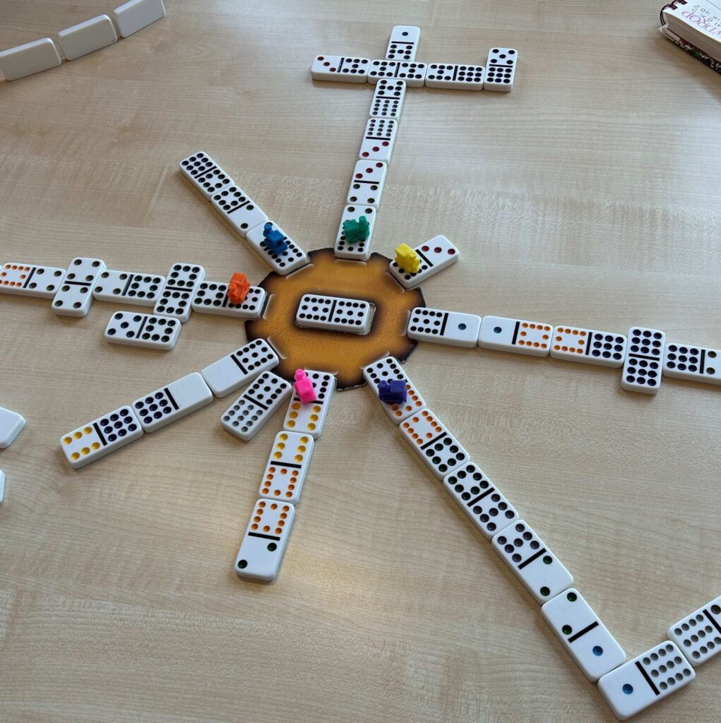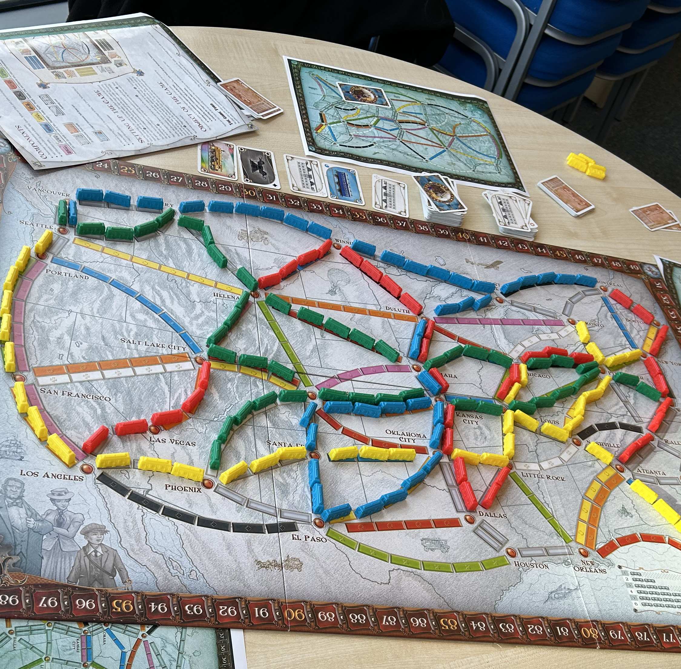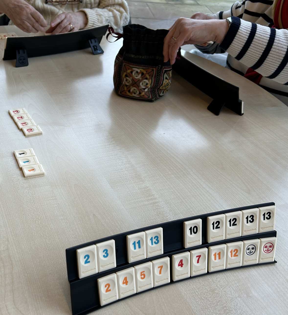The group stores the following games at the library - Rummikub, Upwords, Ticket to Ride, Mah Jong, Scrabble. Rummikub is a firm favourite and is played at one table every week.