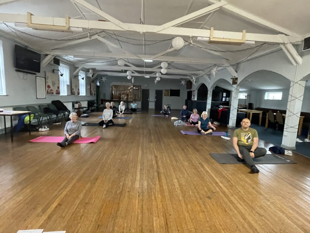 The style of yoga we practise is called Dru Yoga. Dru is a gentle flowing style suitable for most abilities. The sessions start with a series of warm-ups to appropriate music to prepare the body for stretching. The sessions will also include sequences of movements with an emphasis on coordinating breath with movement. We also work with seasonal themes. Sessions may include classical yoga poses and we always finish with a 15/20 minute relaxation.